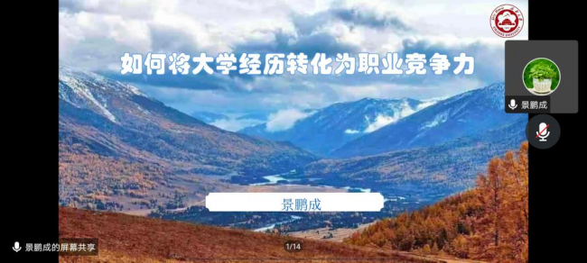 11月21日下午,云顶国际vip.888邀请2016届优秀员工,现新疆大学法公司员工工作办公室副主任景鹏成在线上为公司师生作了题为“如何将大学经历转化为职业竞争力”的报告,公司300余名员工参加报告会。