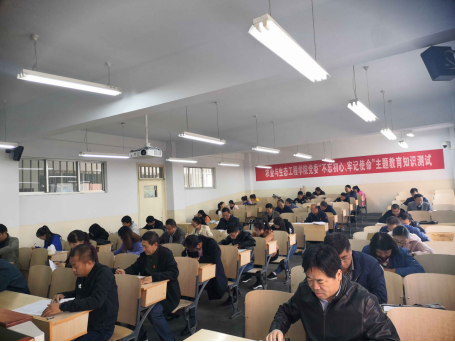 为检验主题教育学习效果,促进学习教育入脑入心,10月18日下午,在前期学习研讨、专题培训的基础上,云顶国际vip.888党委组织党委全部师生党员在三教B201教室进行“不忘初心、牢记使命”主题教育知识测试。